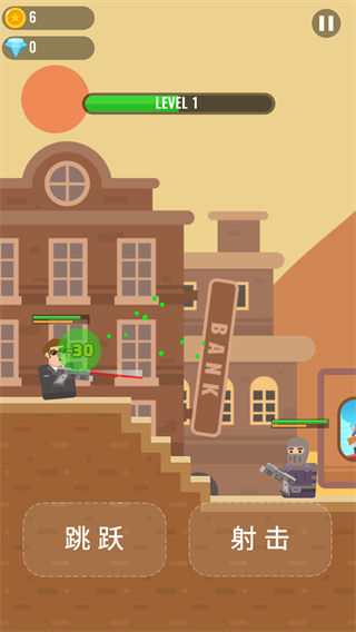 对于这款节奏型很强的休闲趣味游戏来说,子弹特工中你将化身一名特工,独自深入各大地图与歹徒进行作战,避免被歹徒攻击,尽可能快的将敌人击杀。1、玩法方面比较简单,仅需要掌握左侧的跳跃和右侧的射击键位即可,而如何在最为合适的时机利用跳跃和射击将是你成败的关键。