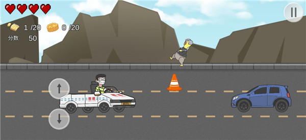 王牌科目三游戏玩法也非常简单,首先我们进入游戏,这里首先是地面的躲避玩法,玩家需要躲避障碍物保证安全,比如车辆、路障和小蔡等,然后也需要拾取路途中的被子,被子可以加分数和恢复爱心,这样玩家就算是撞到障碍物也不会那么快结束游戏。