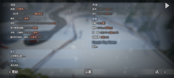 4、在游戏的过程中还可以查看当前的地图,点击右上角查看当前滑行的山峰以及得分项,同时也相当于暂停按钮,当想要回到游戏中时只需点击右上角的开始即可