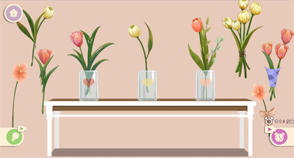3、这里我们进入插花达人,需要将花放到指定的瓶子中;