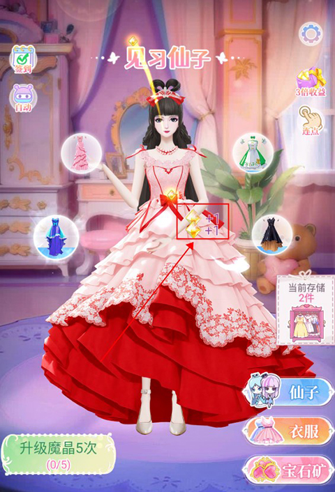 3、可以通过提升点击等级来增加每次点击获取的魔晶数量,升级一定次数还能获得新的衣服。