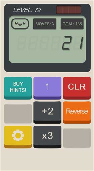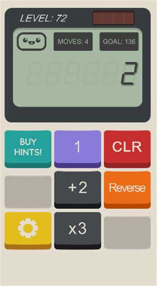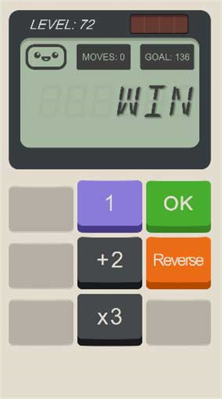 玩法简单又烧脑,每关都有固定步数限制,需要用加减乘除等操作完成目标数字。虽然看起来不复杂,但随着关卡深入难度逐渐增加,尤其是到了72关,底数为0,目标数是136,还得在5步内解决。不过通过一步步的尝试和思考,终于找到了通关方法:+2、*3、反向操作就能轻松过关。