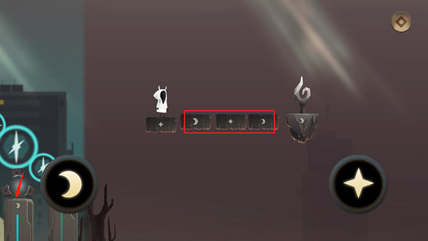 4、点击屏幕上的星星和月亮图标,让光线追踪者向前跳跃。