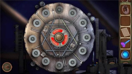 7、点击望远镜中间的按钮,会有提示灯亮起,你需要按照顺序按一篇,总共是三次,下面用钟表的时间来代替灯位置。
