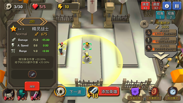 2、每一段时间还会出现BOSS,它的防御力跟血量要更高一些,所以难度就大了。