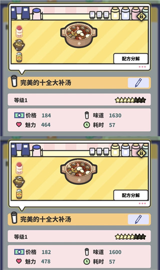 它并不像员工一样要依靠钻石抽取,属于一种可以用游戏内免费产出的材料制作而成的较易获得资源;然而,由于制作奶茶配方的材料搭配的多样性和奶茶研发的不确定性(后文会详述),导致奶茶配方千变万化,难以做出一个系统性、确定性的总结;并且奶茶配方星级越高,所消耗的材料越大,但高星配方对应的高稀有度材料所需的生产时间就越长,导致制作高星配方就更困难。