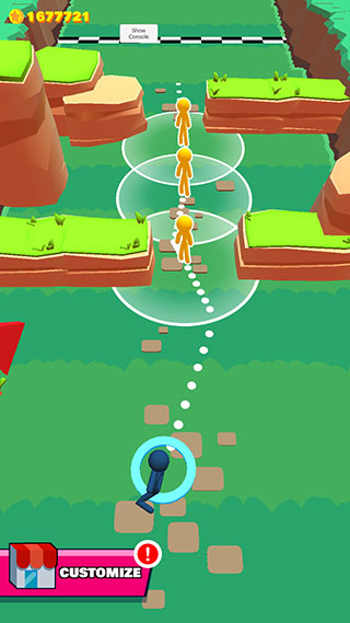 1、通过持续按住屏幕并移动可以调整冲刺角度。