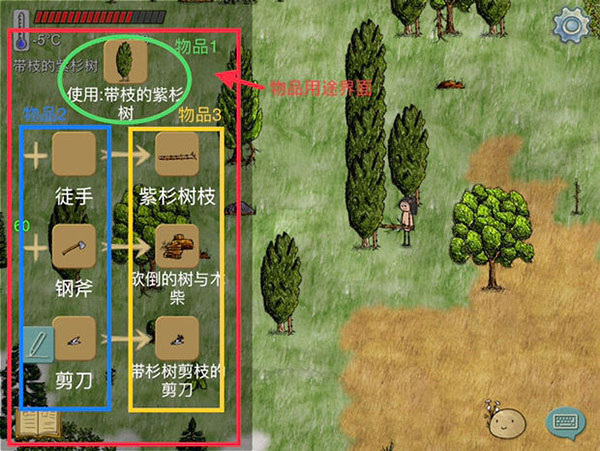 合成书比较适合的使用方法:先拿起一根树枝,打开合成书图标,保持其打开状态,再触碰物品。这里的触碰物品是指,现实中你的手指点击屏幕内显示的物品,只要物品存在于游戏界面视线内,即便你游戏中的角色无法直接触碰到或拿起该物品。