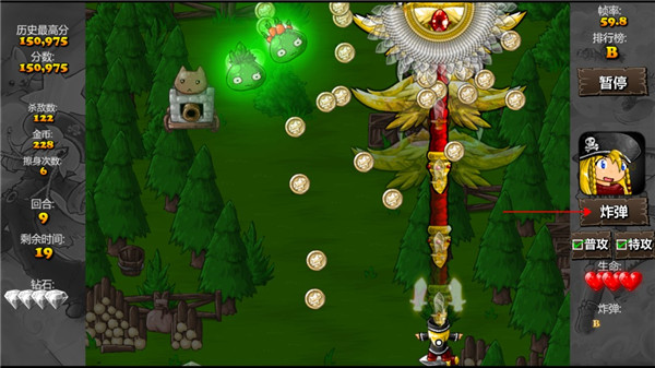 3、在游戏右边选择普攻和特效就可以开始自动攻击。