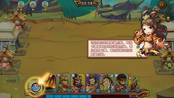 器械卡和战术卡没有势力之分,可在任意阵型中使用。每个卡组可以包含6-15张卡。每个英雄,器械,战术卡都有各自的能量点,也称为费数,在战斗中,需要消费对应的费数,才能使用这些卡。能量会随着时间增长,也有额外的道具和方法加速能量的增长。游戏中会有不同类型的建筑,破坏他们会有不同的效果,比如击破敌方的兵器库,就可获得攻击加成的buff;击破敌方的粮仓,可以获得额外的能量。这么多富含策略性和趣味性的游戏设定,无论是谁看了都会忍不住心动吧?那就赶紧拿起手机下载吧!