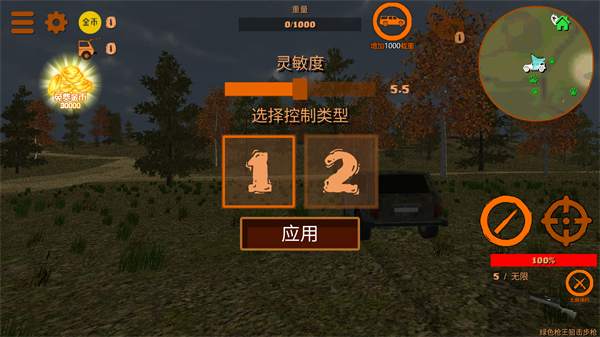 2、你可以选择驾驶自己的车辆去狩猎,左侧控制车辆方向,右侧则是刹车和油门按钮。