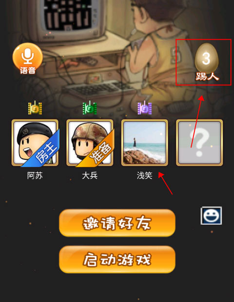 4、进入后头像上方的坦克颜色就代表自己,点击“邀请好友”就可以一起玩啦。
