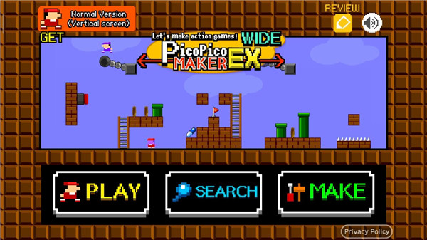游戏制作器手机版(Game Creator)是一款超级玛丽风格的横版闯关游戏,同时是允许玩家自由创作的应用。游戏界面有开始、创造、搜索三种模式,开始是数十种类《超级玛丽》关卡,来试着挑战下有趣的“玛丽续版”!一开始就有提到自由创作,本游内置三种编辑器,可制作四种形式玩法,是在一个方块平面,有水、炸弹、墙壁、梯子等40+物品,你还可调节画面背景。而搜索指发布的作品,你或其他玩家的,有好作品记得分享哦!并且游戏画面也不赖,高清、明亮的像素画风,喜欢的话快来下载吧~