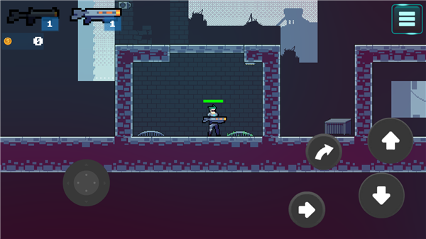 1、游戏中你是在网络上的英雄,击杀这些像素怪,征服整个城区。游戏玩法很简单,只有移动、闪现、上跳下跳、武器会自动射击。
