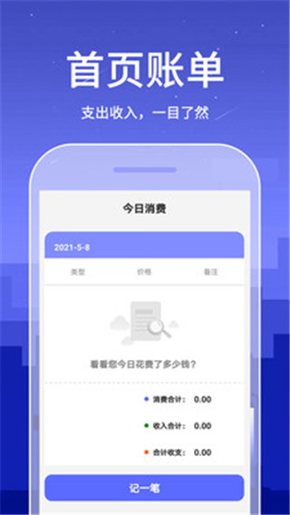 1、简单的操作流程,只需几秒即可完成一笔记账操作