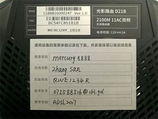7、其他说明:路由器管理员密码和无线密码很容易忘记,为此Mercury路由器贴心的准备了一张小贴纸,建议您将设置的相关密码填写在随产品配送的“路由器参数记录标贴”上,并将标签贴于路由器底部,方便日后管理。