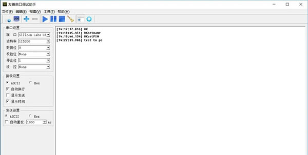 8、在消息文本框里面输入一个简单的消息“test to PC“测试一下,点击那个纸飞机图标,就可以在PC端的串口调试软件里面看到新接受到的一行信息了。
