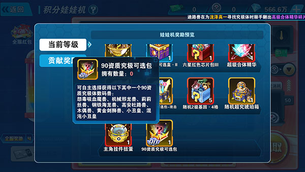 在多种奖励中随机获得一项,其中就有究极体数码宝贝自选包。