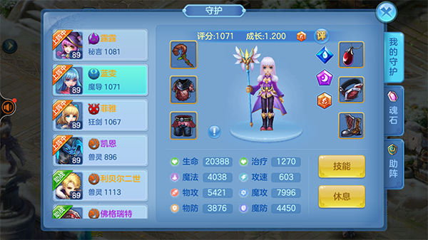 1、蓝雯自不必说了,一直都是魔导守护的第一人选,相比于莉娜和福波斯,蓝雯输出更加稳定,技能简单直接,想要补输出选择蓝雯绝对没错!