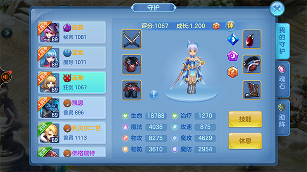 3、第三是菲亚,喵子刚刚到达89级的之后发现,越来越多的人把菲亚作为出战守护,到了竞技场之后,才发现菲亚的强大之处。虽然身板比较脆,但是出手速度快而且有两个群体技能,比较脆的宝宝如果不是隐攻很有可能就被第一回合就带走。并且相比较于无名,名字感觉菲亚胜在持续输出上,宝宝们你们觉得呢?