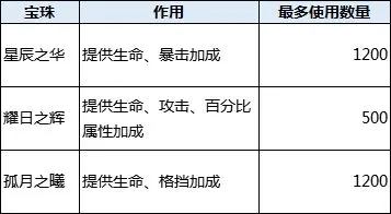 星珠属于资质丹类型,总共分为星辰之华、耀日之辉、孤月之曦三种。不同的星珠加成的属性也截然不同,每个星珠最多可以使用的个数也有所不同。