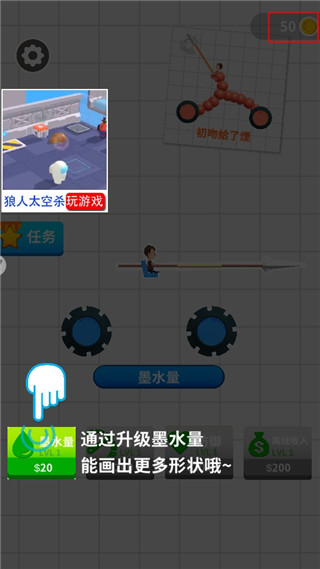 5、可以使用金币购买更多的墨水,绘制更加坚固的战车。
