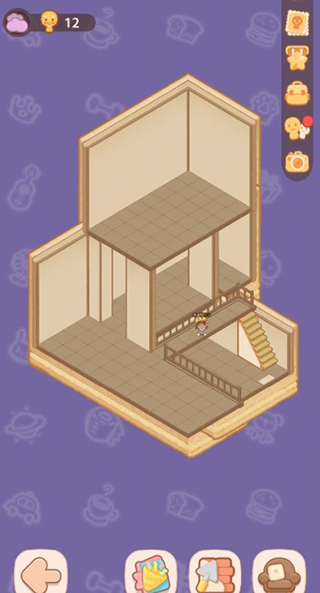2、之后玩家可以点击建造,需要先简单的建造第一层,打好地铺,再放置一个楼梯,第一层就做好啦!