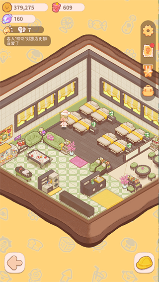 乌冬的旅店一款经营模拟挂机游戏,游戏采用卡通画风打造而成,偏向于可爱、萌萌哒,并且轻松休闲的玩法也受到很多玩家的喜爱。游戏主要是通过招揽动物客人赚取小饼干解锁更多的设施和家具,升级打造旅店房间,使得旅店收益越来越高。游戏中人气对于旅店的作用还是非常大的,大家需要在游戏中通过不同的方法提升人气,而且人气提升的方法还是非常多的,比如好的环境,好的服务态度,所有在游戏中玩家可以通过长按进行布置,解锁风格各异的床铺桌椅、墙纸地板,都可以根据你的喜好改变位置、切换角度、随心搭配!你可以尽情奇思妙想和发挥无限创意,DIY各种类型的客房,打造日式风情温泉旅店,亦或是欧式豪华巴洛克房间,随时随地来一场粉红色的甜品盛宴。整个游戏玩下来不费心,相对于那些操作起来无比复杂,又有很多任务、剧情需要完成的游戏来说,乌冬的旅店就是佛系游戏了,只要挂挂机、升级升级家具就可以了,可以为玩家带来沉浸式的游戏体验感!