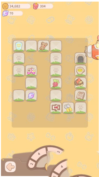 点击下方箭头掷骰子,小鸡会跟着步数移动,随机获得各类道具。