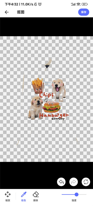 5、进入抠图页面,选择吸色或者擦除抠图;