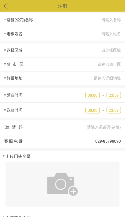 3、最后完成店铺的各项信息登记,其中带星号的为必填项,完成后点击【注册】按钮即可完成注册。