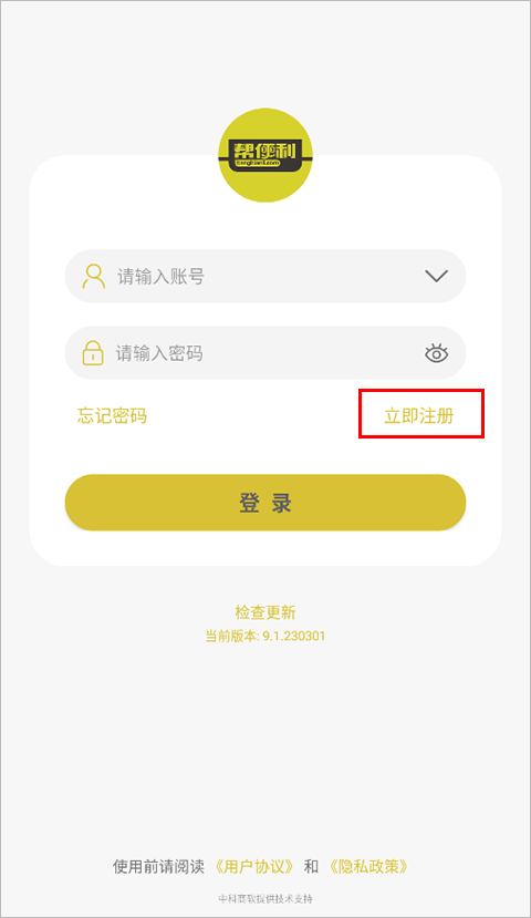 1、进入软件的登录界面之后,我们再点击登录按钮右下方的【立即注册】按钮。