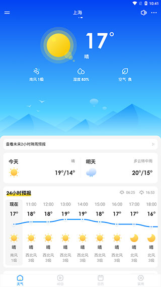 3、【24小时预报】:关注当日天气变化趋势,早晚温差早知道。
