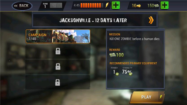 3、开始你得去到一个军火库哪里是你的开始,你得从里面获取大量的枪械,用来对付大量的僵尸从而拯救更多的人类幸存者