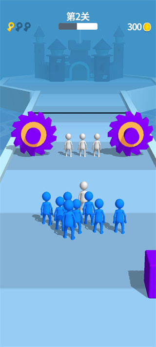 团结行动最新版是一款以酷跑为基本的游戏闯关手游,游戏画面十分的简单,游戏中玩家需要独自奔跑,通过在关卡中不断的收集人群,带领你的团队穿过各种移动、旋转和膨胀的障碍计算你奔跑的步数并保存尽可能多的人群。游戏的自由度非常高,玩家可以控制小人来同化身边的小人,利用他们来帮助自己进行闯关,在到达终点的时候,玩家收集的小人会进攻堡垒击败敌人即可闯关成功。团结行动游戏操作十分的简单,玩家只需要按住屏幕进行左右滑动即可进行移动,玩家需要聚集灰色的小人来攻击堡垒,需要注意的是,关卡中会有许多的障碍,玩家需要通过左右移动来躲避障碍,闯过所有的障碍,玩家聚集来的小人就会对堡垒进行进攻,击败所有敌人即可通关,通关后游戏还会为玩家发放一定量的金币,玩家可以利用发放的金币来升级技能。团结行动游戏内还有各种道具可以利用,帮助自己进行闯关,比如关卡中有钥匙道具,玩家收集到足够的钥匙道具即可开启宝箱。还在等什么,有兴趣的玩家快来下载游戏进行游戏闯关吧!