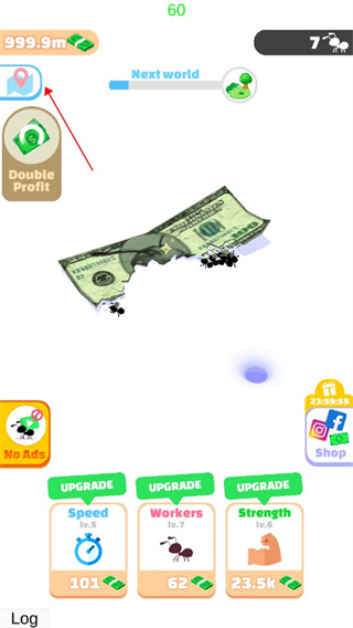 2、之后就开始会有陆陆续续的有蚂蚁进行搬运,太慢了怎么办?可以点击下方按钮使用金币召唤更厉害的蚂蚁;