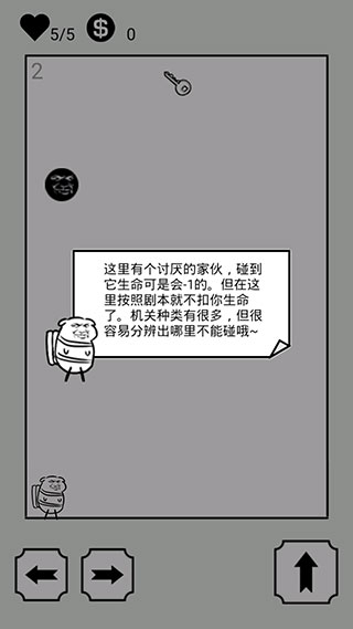 4、这里有个讨厌的家伙,碰到它生命可是会-1的。但在这里按照剧本就不扣你生命了。机关种类有很多,但很容易分辨出哪里不能碰哦。