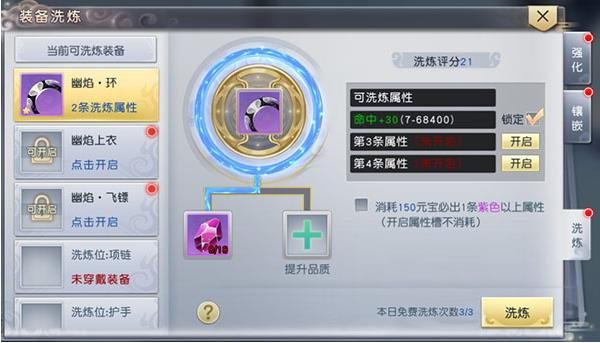 3、每日有3次免费洗炼的机会,3次之后可以消耗洗练石继续洗炼