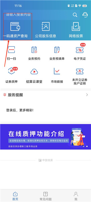 2、再回到软件首页,点击一码通资产查询即可查询股票