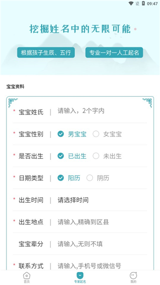 6、用户还可以点击专家起名,输入孩子的各种基本信息即可。