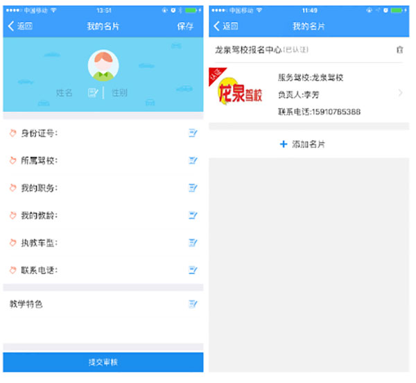 身份不同名片内容不同,展示自身优势,招生更有魅力,审核成功会增加学员信任度。