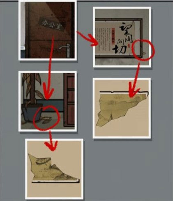 1、进入办公室后,在望闻问切牌后拾取明信片碎片4,植物处获得明信片2。