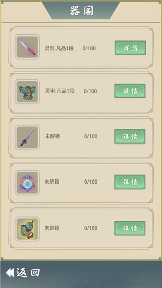 8、前往器阁,平均升级灵剑和灵甲,蕴灵金够10个就注灵,优先把每个都注灵一次,后续有了更多蕴灵金再注灵刷新属性。