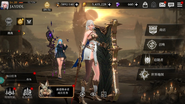 当然,这只是其中一种方法。前期也可以配合游戏中的新手任务,来完成快速升级。根据每一个任务的要求,完成之后就会获得大量的经验。接下来,则是游戏中比较重要的追随者获得办法。在刚开始进行游戏的时候,系统会给予两个追随者。玩家可使用主界面的召唤功能,来获取更多追随者。