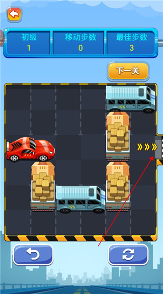 4、进入关卡后,我们需要想办法将挡住汽车的其他货车挪开,让汽车能够顺利驶向出口