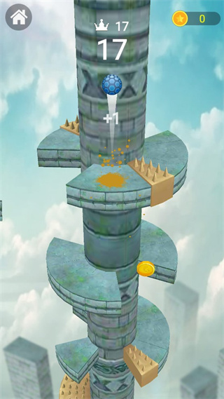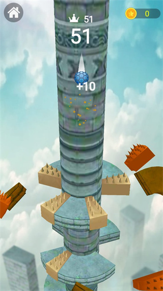 3、控制球球围绕着柱子移动,躲避挡板,克服所有的困难不断的下坠挑战。