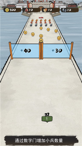 3、创新玩法,兵种克制,在跑酷游戏内加入了兵种克制玩法,玩家可根据每座城池不同的情况,选择自己优势兵种。