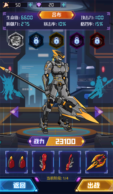 1、超级机甲战神包括过关模式、攀塔、竞技场等选项,带来全新乐趣。