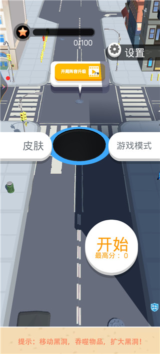 1、进入游戏后,我们点击屏幕直接开始,尽可能的吞噬对手成为最大的黑洞。