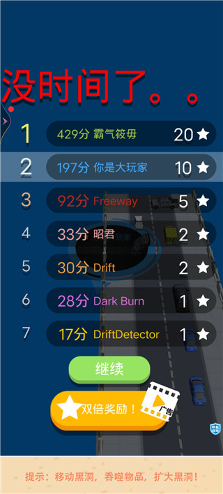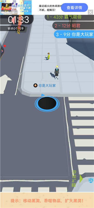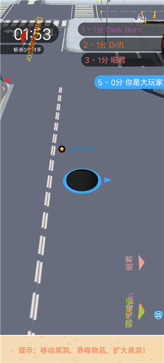 2、滑动屏幕来控制黑洞行动,我们前期先脱离对手的视野,单独发育一会。